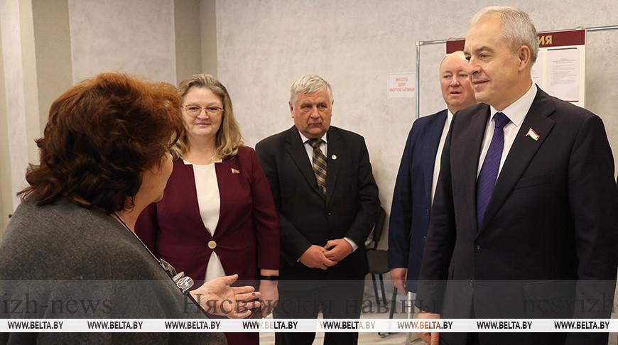 Игорь Сергеенко побывал на двух избирательных участках в Докщицах, чтобы посмотреть, как они готовы к выборам Президента Беларуси. Светлые помещения, оборудованные всем необходимым, очереди избирателей во время досрочного голосования, доброжелательность членов избирательной комиссии — это то, на что председатель Палаты представителей обратил внимание сразу. Он поинтересовался, активно ли приходят граждане на досрочное голосование. «У нас за два дня явка составила 35%. Это намного больше, чем во время предыдущих избирательных кампаний. Люди приходят с улыбками, терпеливо ждут своей очереди, все приветливые, доброжелательные. В воскресенье здесь будет работать буфет, пройдет концерт. Людям нужны такие праздники», — поделилась своими наблюдениями председатель избирательной комиссии Надежда Семещенок на участке для голосования №1, расположенного в здании водоканала.