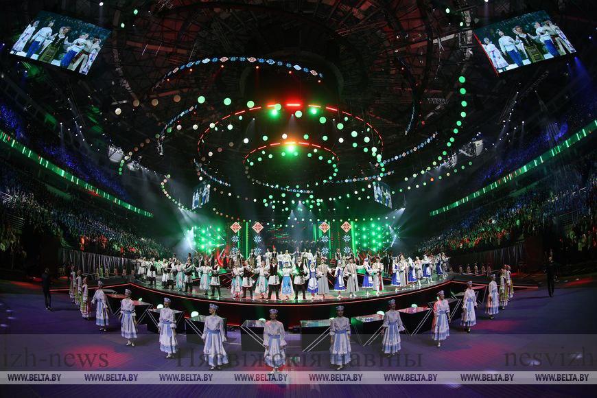 Концерт продолжили Юлия Быкова и Евгений Олейник, которые душевно исполнили полюбившуюся миллионам слушателей песню «Затрымай мяне». Сюрпризом для зрителей стало появление на сцене нашего земляка Юрия Антонова, народного артиста Российской Федерации. Своды «Минск- Арены» сотрясли вечные композиции «Я вспоминаю», «Не забывай». В свои почти 80 лет Юрий Михайлович сохраняет невероятный задор и искреннюю любовь к музыке. Бурей оваций встретил зал Таисию Повалий, равно как и других выступавших звезд сцены. Традиционно номер на рояле исполнил Николай Лукашенко.