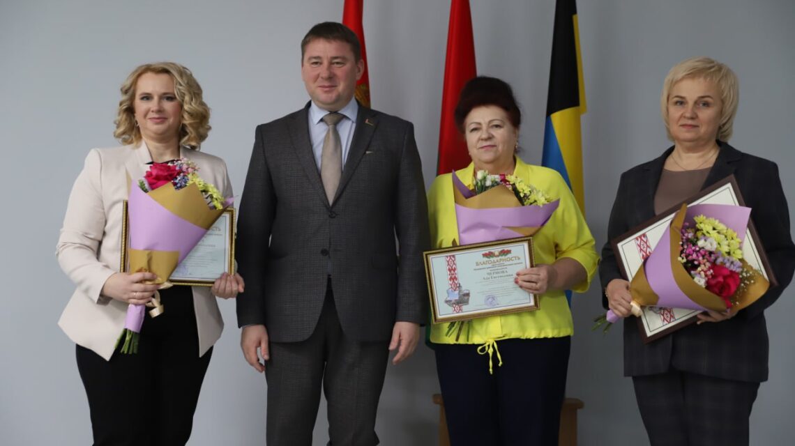 Андрей Ратомский вручил Почетную грамоту Несвижского районного исполнительного комитета врачу ультразвуковой диагностики Валентине Годун и объявил Благодарность председателя райисполкома врачу общей практики (заведующему Оношковской амбулаторией) Аде Черновой и медицинской сестре стоматологического отделения Ирине Силич.