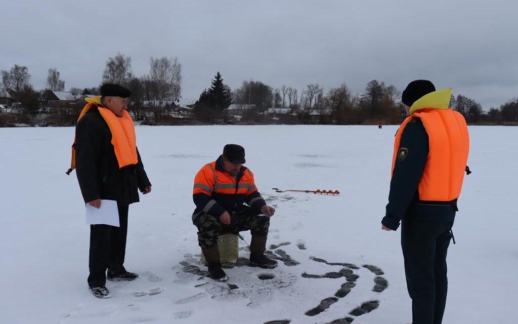 На озере Девичьем в городе Несвиже то тут, то там виднелись силуэты любителей подледного лова. Уже с далека было видно кто в жилете, а кто нет. Участники рейда подходя к каждому рыболову предупреждали о запрете выхода на лед без спасательного жилета, обращая внимание и на минимальную толщину льда.