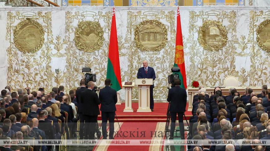 «Контуры нашей стратегии обозначены в предвыборной программе. И вы знаете: все, что мы пообещали, будет сделано. С вами вместе. Во имя благополучия страны и белорусского народа. Чтобы Беларусь шагнула вперед, в будущее. Крепкая экономика — наша политика и залог успеха. Перспективные инвестиционные проекты, инновационные производства, новые рабочие места — базисные задачи предстоящей пятилетки», — сказал глава государства.