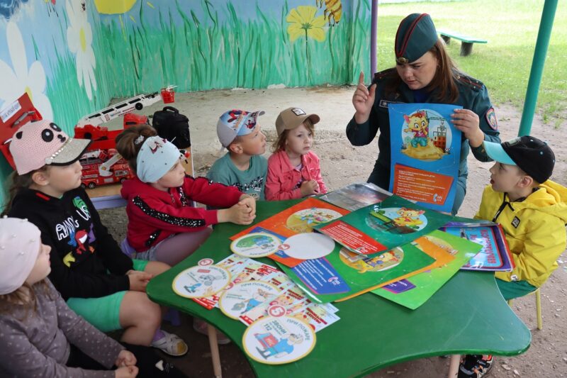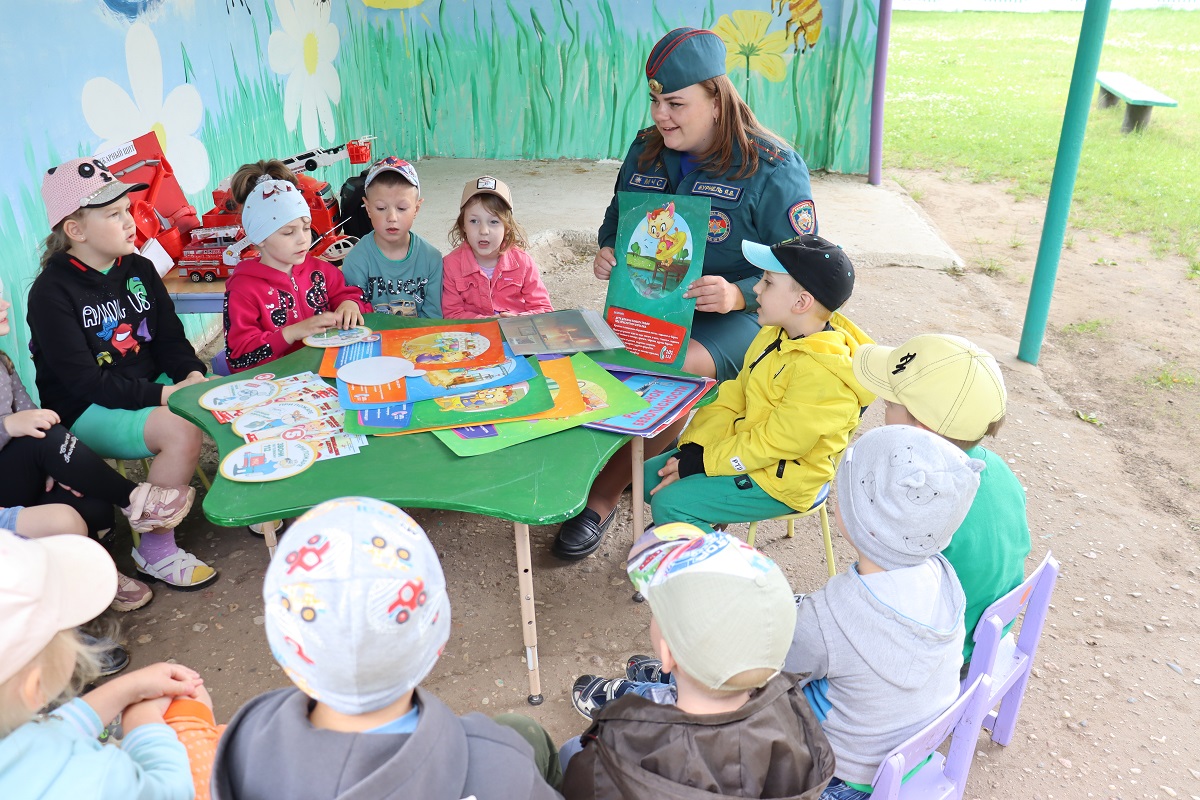 С помощью ярких картинок и простых объяснений малыши разобрали, что делать, если они почувствовали запах дыма или увидели огонь. С помощью «рюкзачка безопасности» вспомнили и о правилах безопасного поведения на воде.