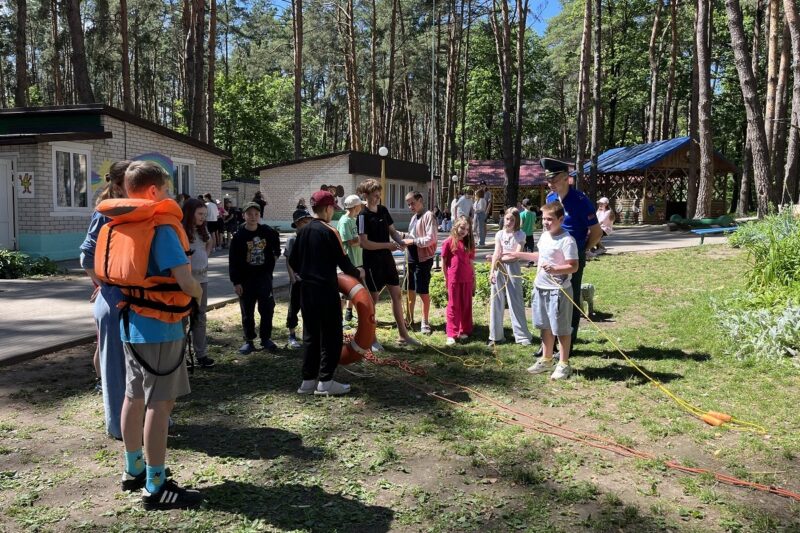 Дети замерли, наблюдая, как спасатель ловко бросает спасательный круг и конец Александрова. Потом каждый смог попробовать себя в роли спасателя, под чутким руководством профессионалов.