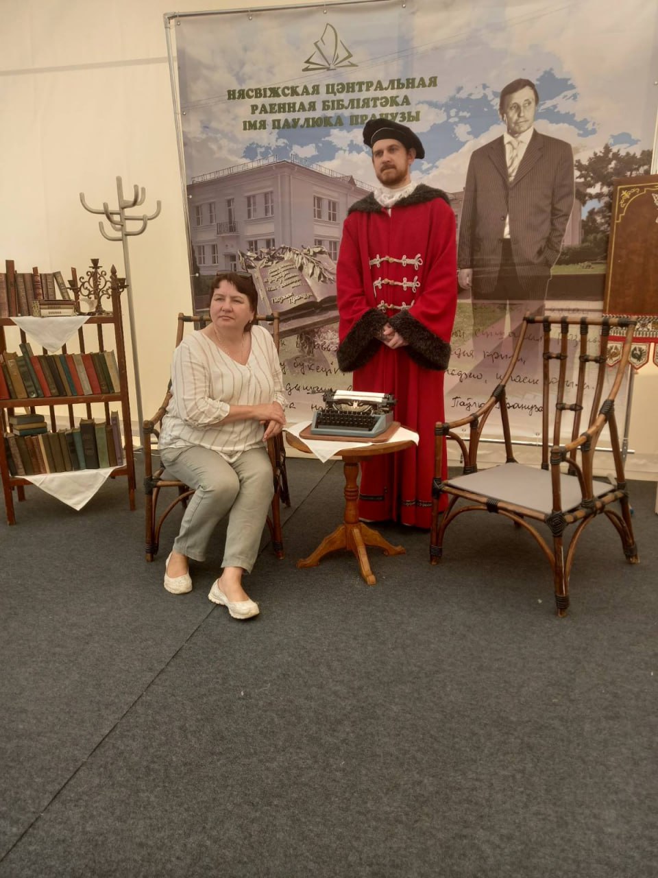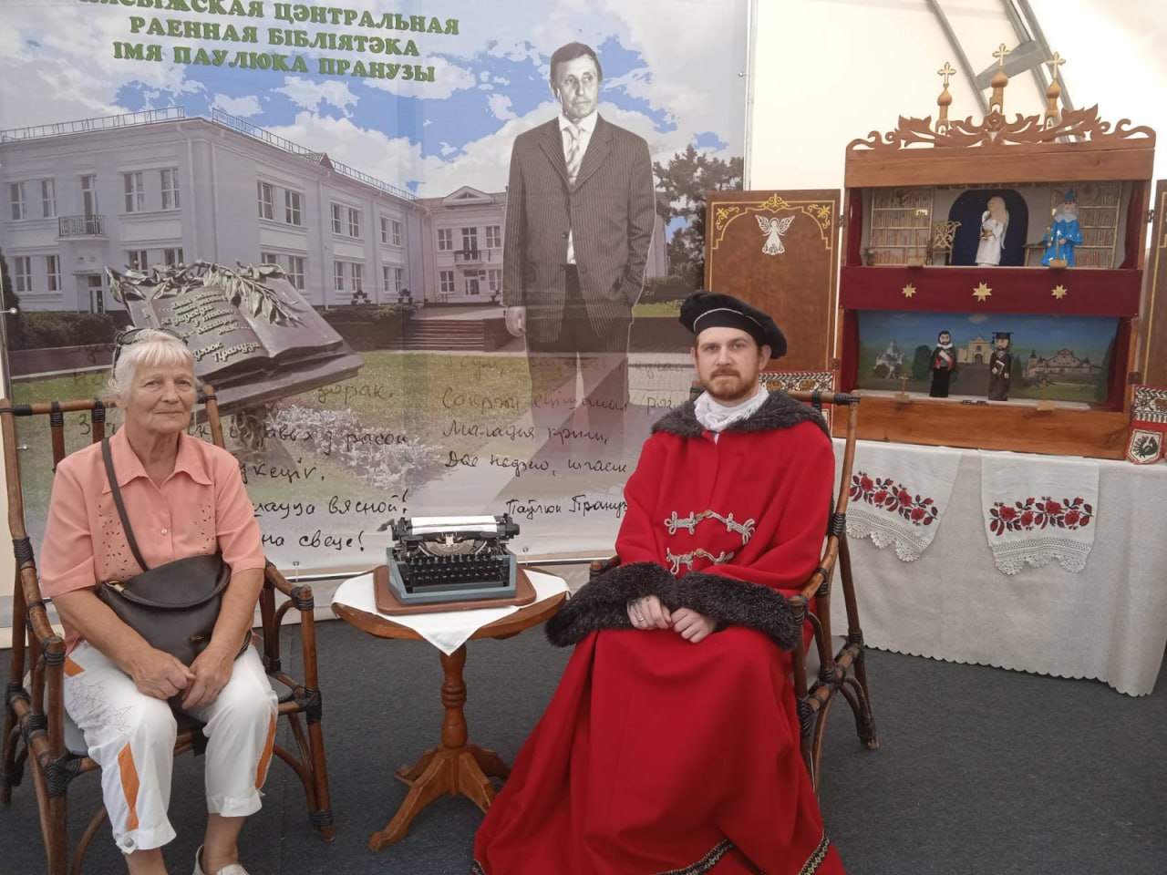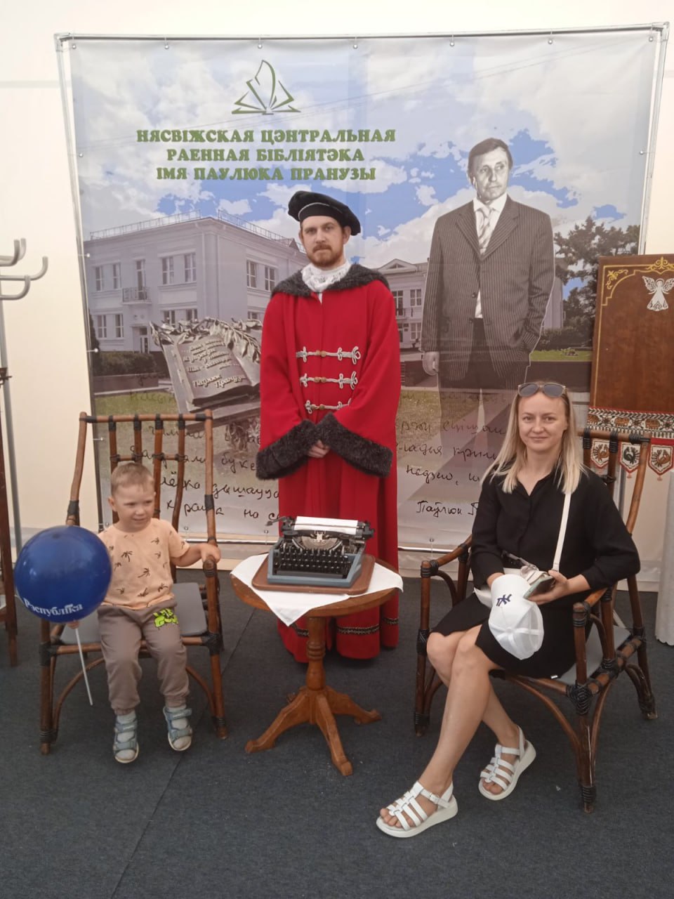 На память желающие могут сфотографироваться в фотозоне вместе с «живым» книгопечатником.