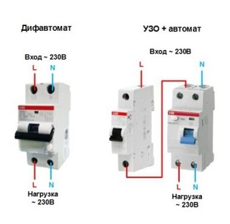 УЗО (устройство защитного отключения) — это электрический аппарат, который служит для автоматического отключения электрической цепи в случае возникновения в ней тока утечки (дифференциального тока). Нужно учитывать важный момент: УЗО не защищает от короткого замыкания и перегрузки, поэтому в обязательном порядке вместе с УЗО в цепи должен устанавливаться автоматический выключатель. Вместо этих двух устройств можно устанавливать автоматический выключатель дифференциального тока (кратко, дифференциальный автомат — ДИФ), который совмещает в себе функции защиты как от короткого замыкания,так и от тока утечки. Номинальный ток устройства защиты, должен соответствовать присоединяемой нагрузке и параметрам электросети. Наиболее часто в быту применяются устройства с номинальными токами 10, 16, 25А и дифференциальным током 30мА.