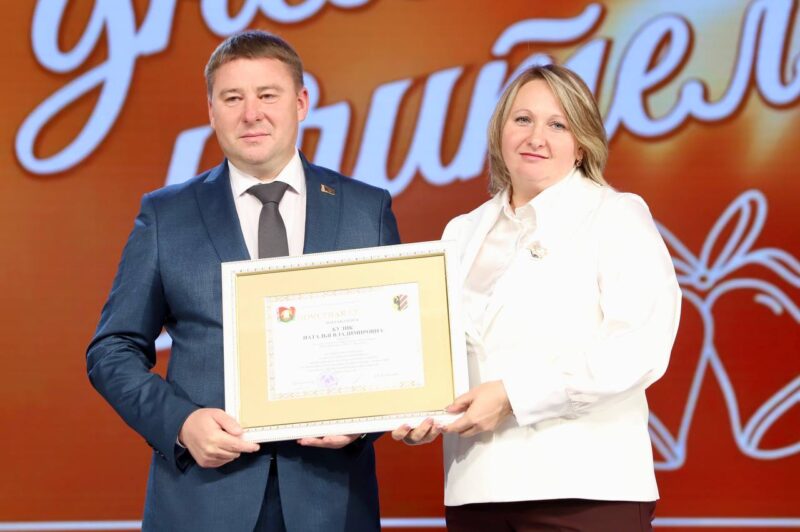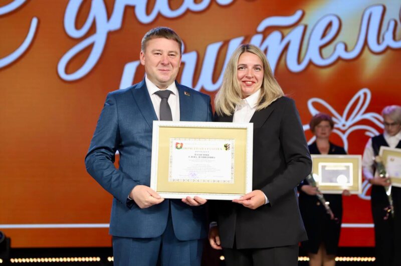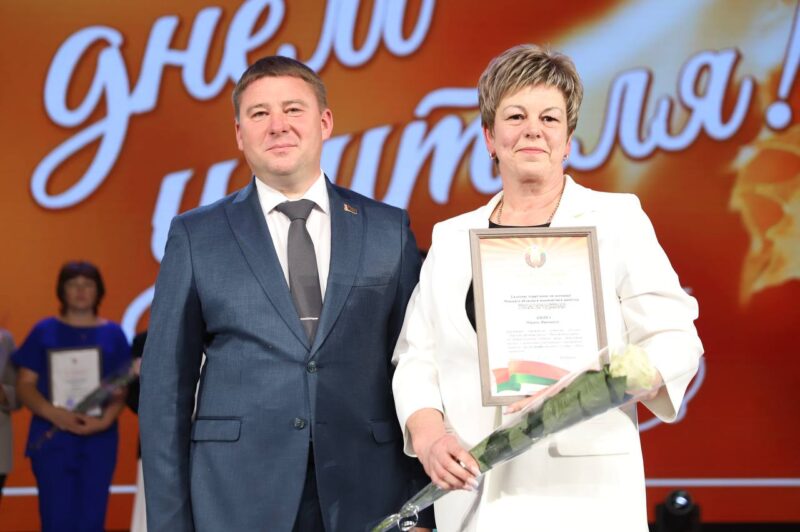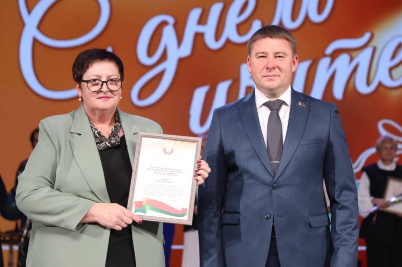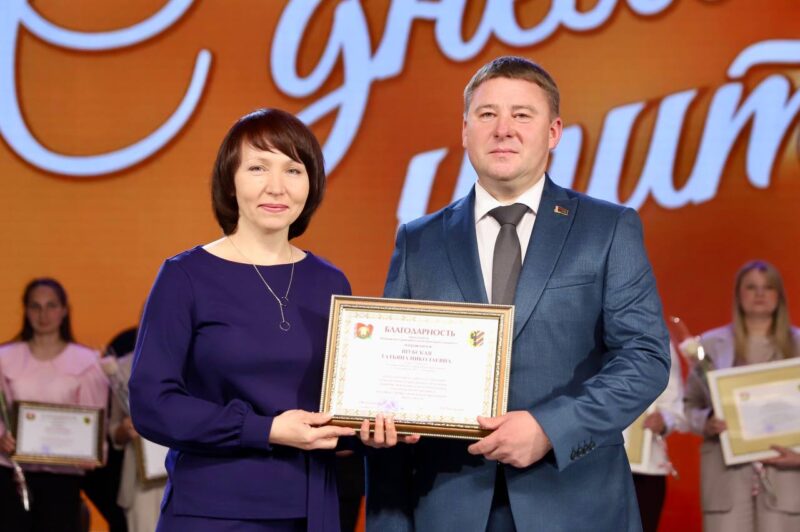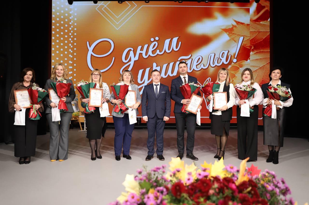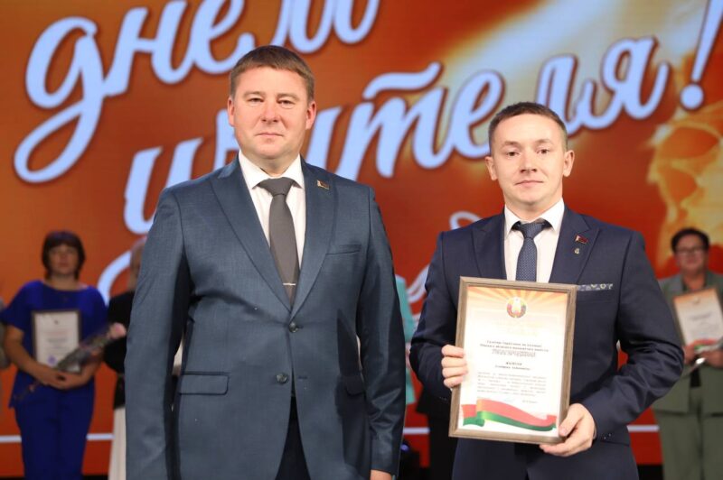 — Сегодня общество доверило вам свое будущее, — сказал в своем обращении к педагогам Андрей Казимирович. — Всё человечество когда-то имело учителя — первого, второго и так далее. Главное, что благодаря учителю мы выросли теми, кто мы есть. И от меня лично и всего районного исполнительного комитета примите искренние слова благодарности за верность выбранной вами профессии, за самопожертвование и креатив, которые вы проявляете.