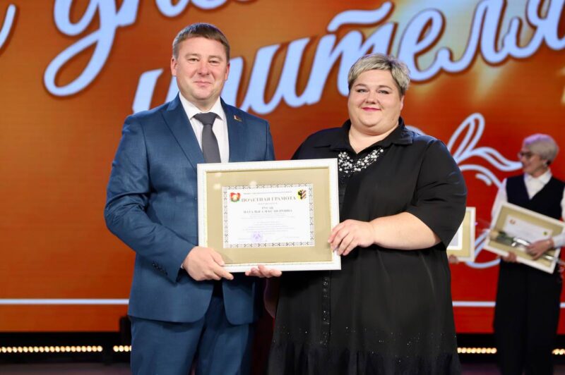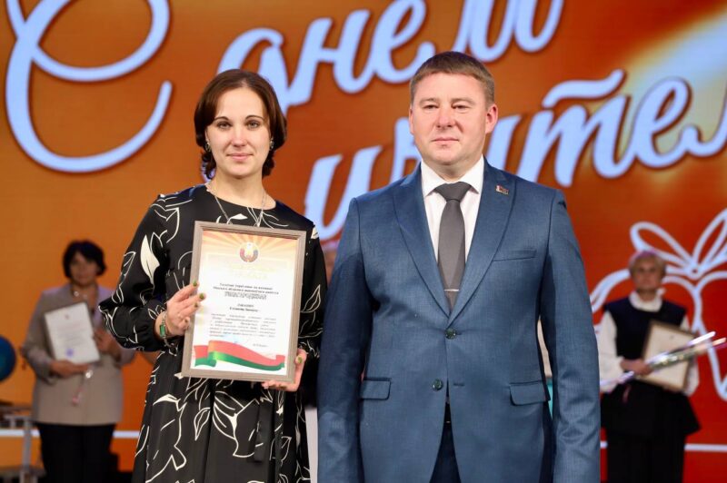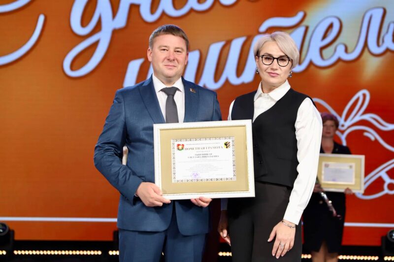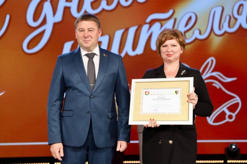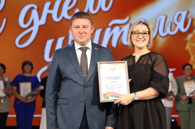 Она напомнила слова министра образования Андрея Иванца о том, что «в мире только одна профессия от Бога — это учитель. Все остальные профессии — от учителя». Она напомнила педагогам о том, что их труд — это важнейшая составляющая в воспитании и формировании мировоззрения нашего молодого поколения, это залог успешного будущего нашей страны. Светлана Анатольевна также пожелала виновникам торжества, чтобы их работа приносила им только радость и удовлетворение, чтобы ученики и воспитанники всегда радовали своими успехами, а родители уважали и благодарили за заботу о детях. Она также вручила тридцати педагогам Почетные грамоты управления по образованию, спорту и туризму Несвижского райисполкома.