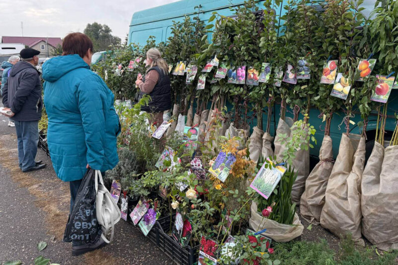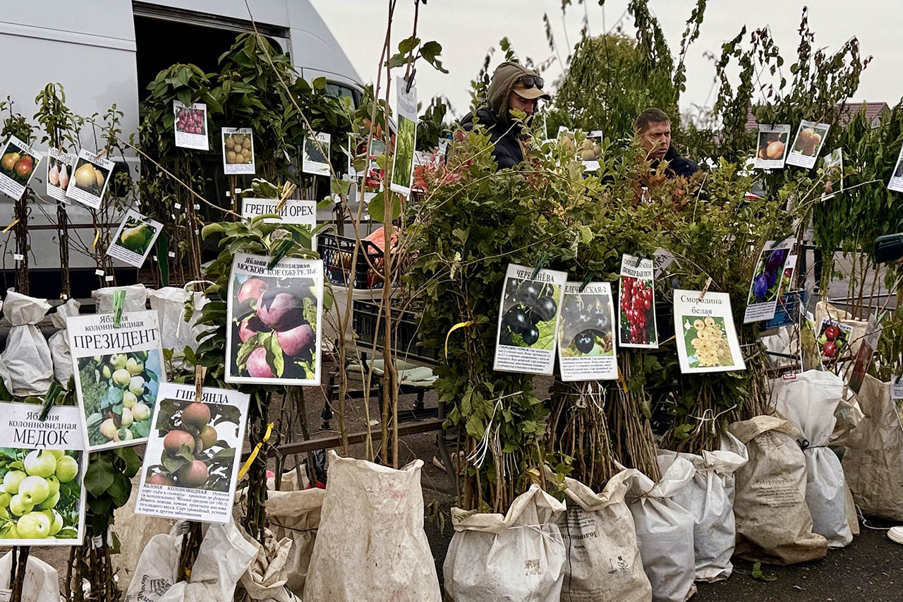 Покупателям предлагались саженцы декоративных кустарников и садовых растений: яблони разных сортов — по 15 рублей, груши — по 20. Саженцы сливы стоили 25 рублей, персика и нектарина — 30 рублей, голубика была по 10 и 15 рублей.