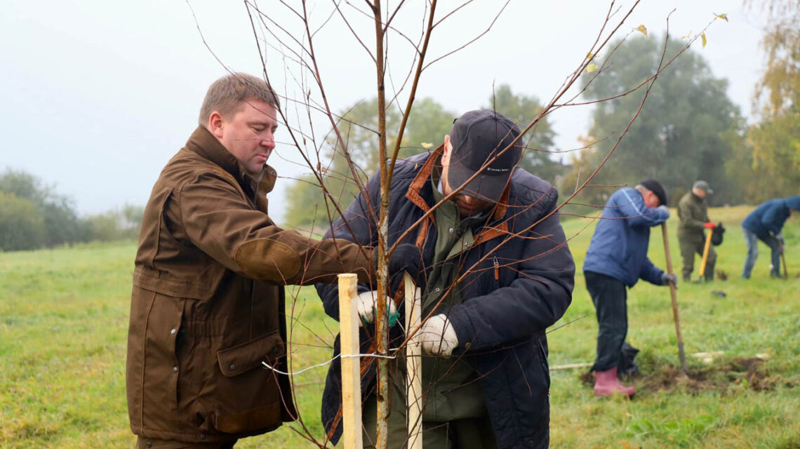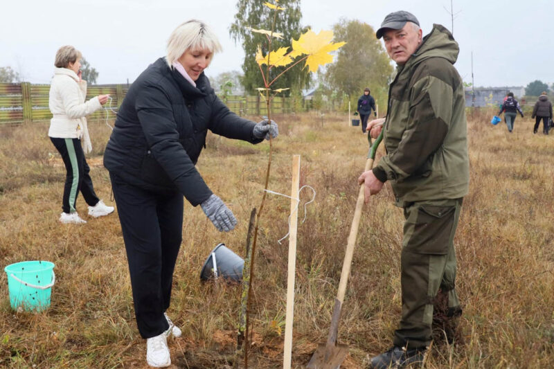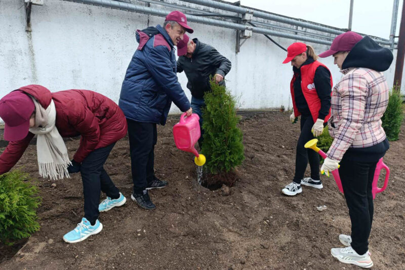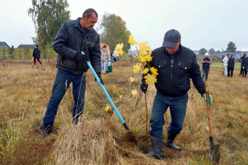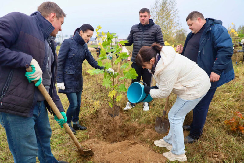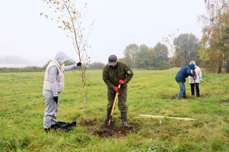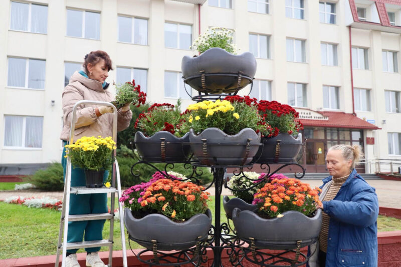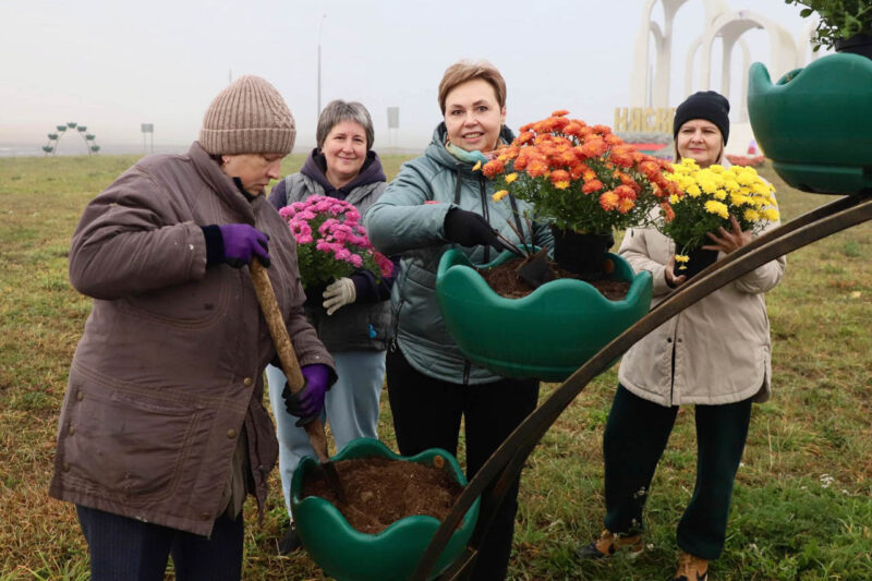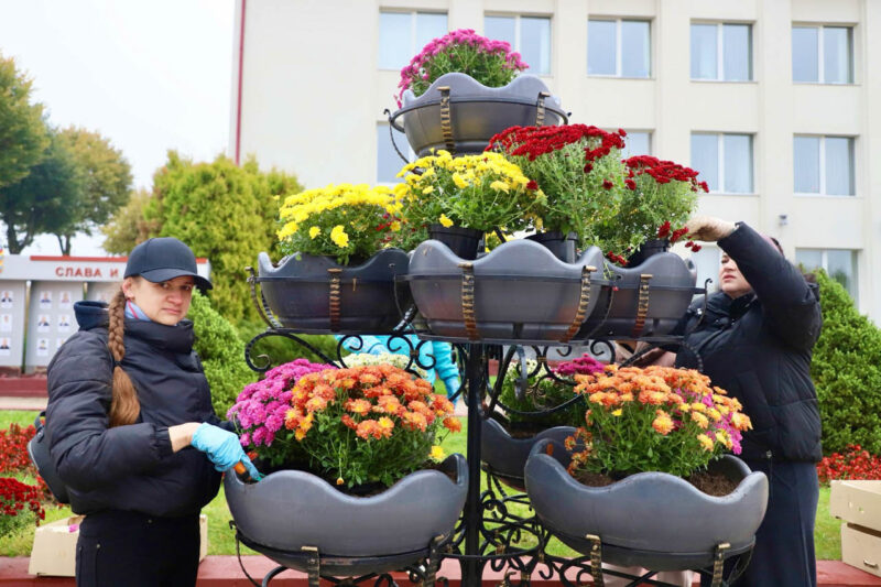 Так, на кольце на въезде в Несвиж со стороны Городеи яркие хризантемы высаживали представители первичной организации ОО «Белорусский союз женщин» районного исполнительного комитета, а на улице Зеленой работало руководство райисполкома во главе с председателем Андреем Ратомским. Здесь были посажены березы.