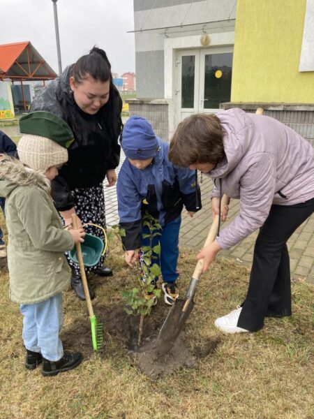 Педагоги детского сада № 1 г.Несвижа «Волшебная страна», воспитанники старшей группы учреждения и детского дошкольного лесничества «Зелёные спасатели» присоединились к республиканской акции «Единый день озеленения!», посадив на объектах экологической тропы «Лес» и «Пруд» клёны и кусты сирени.