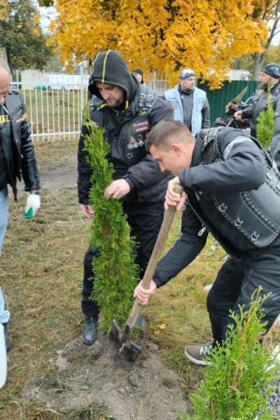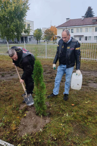 Молоденькие туйки возле памятника сожженной в годы Великой Отечественной войны деревне Огородники, что неподалек от ЦРБ, посадили мотолюбители г. Несвижа и района и представители мотоклуба «MCC IRON BROTHERS», ознаменовав этим не только Единый день озеленения, но и завершение мотосезона.