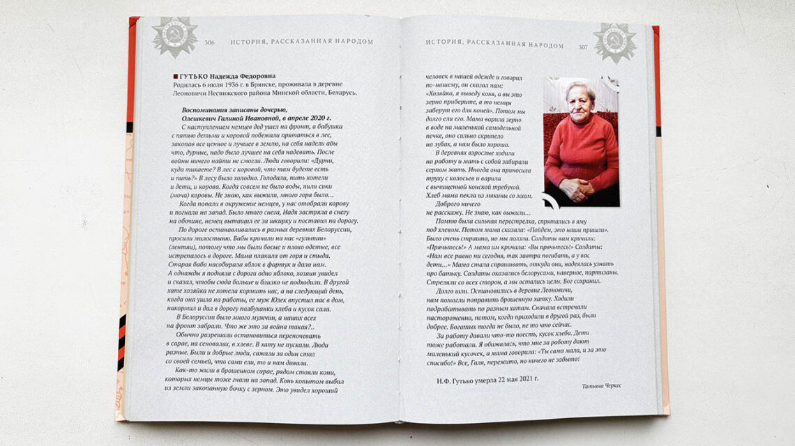 В книге «История, рассказанная народом», изданной в Москве в 2023 году, страницы 306-307 посвящены воспоминаниям жительницы деревни Леоновичи, уроженки Брянска Надежды Федоровны Гутько. История семьи нашей землячки — целая энциклопедия жизни мирных советских граждан, оказавшихся в немецко-фашистской оккупации в годы Великой Отечественной войны. Это — гимн их стойкости, трудолюбию, крепости жизненного стержня.