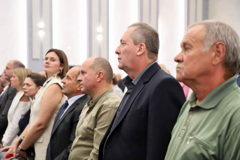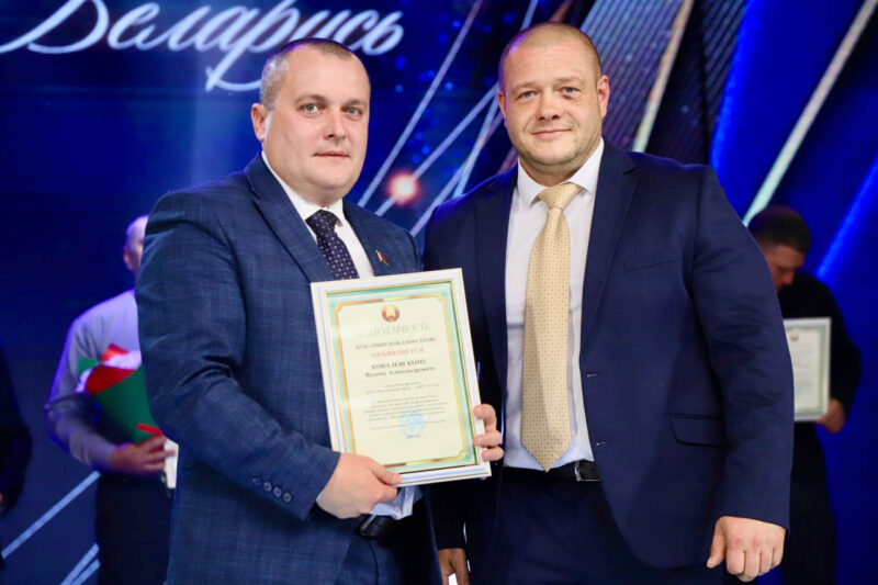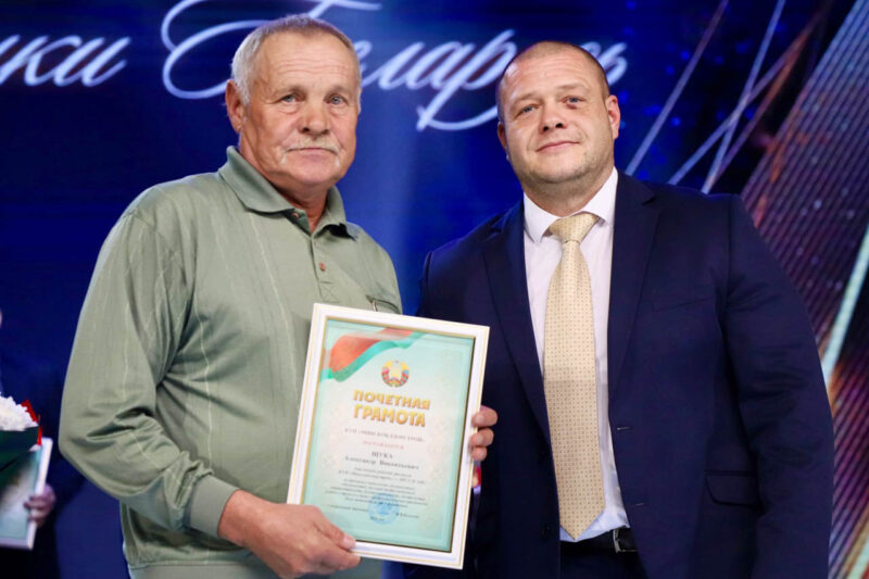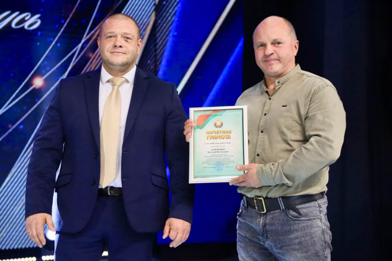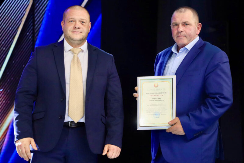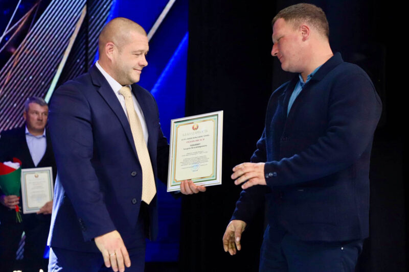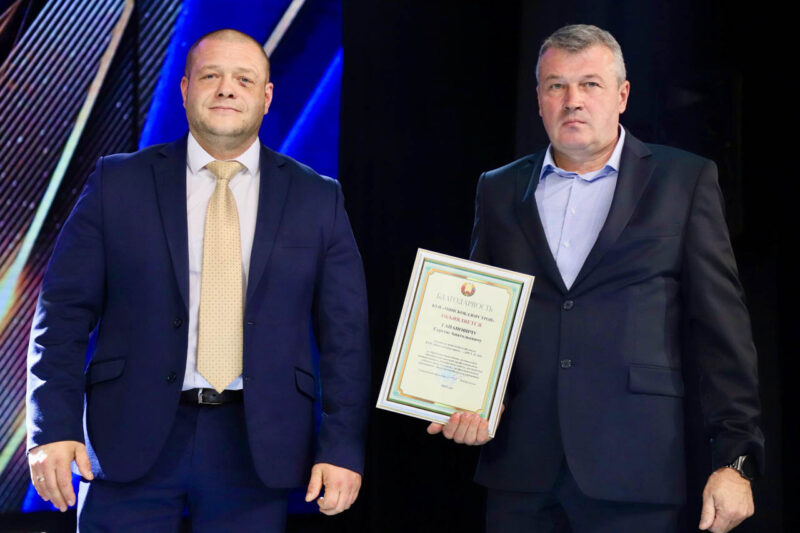 Генеральный директор КУП «Минскоблдорстрой» Максим Колесеня, заместитель председателя Минского облисполкома Виктор Рагусский поздравили коллег с наступающим праздником и вручили заслуженные награды.