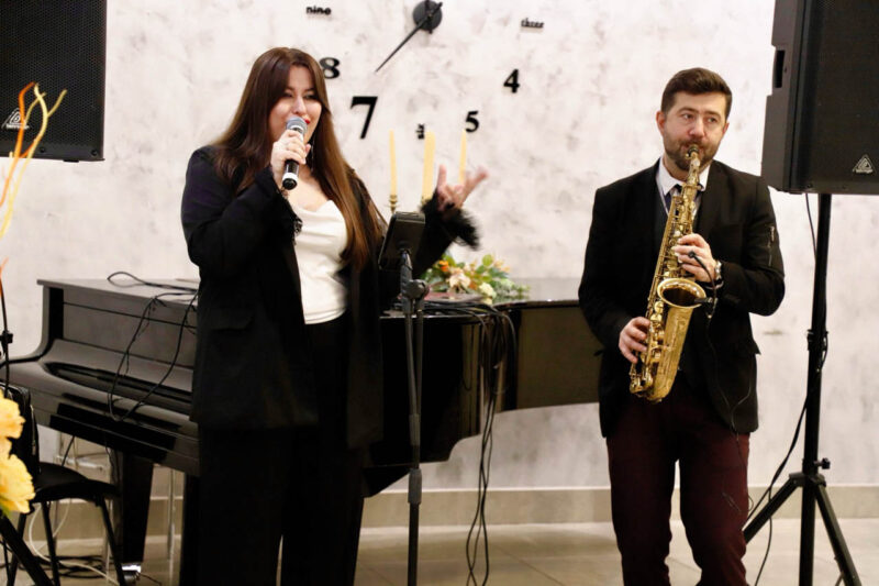Музыкальные поздравления всем присутствующим в зале подарили дуэт «ДИ-ФИ» и танцевальный коллектив «Орион», народный ансамбль песни «Млечный путь», народный ансамбль песни «Забава» и другие.