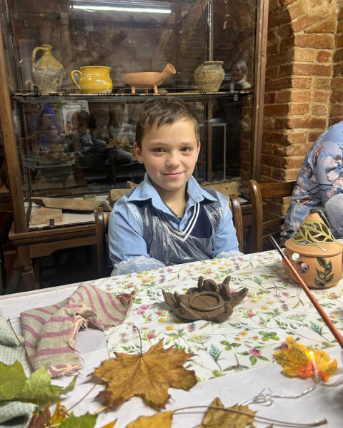 Для детей и их мам, работающих в сфере сельского хозяйства, методисты музея провели экскурсию по гончарной мастерской, рассказали о техниках работы с глиной, показали готовые изделия. Особенно удивила ребят подборка глиняных кувшинов различных размеров. Самый маленький из которых — не больше ногтя взрослого человека.