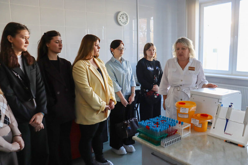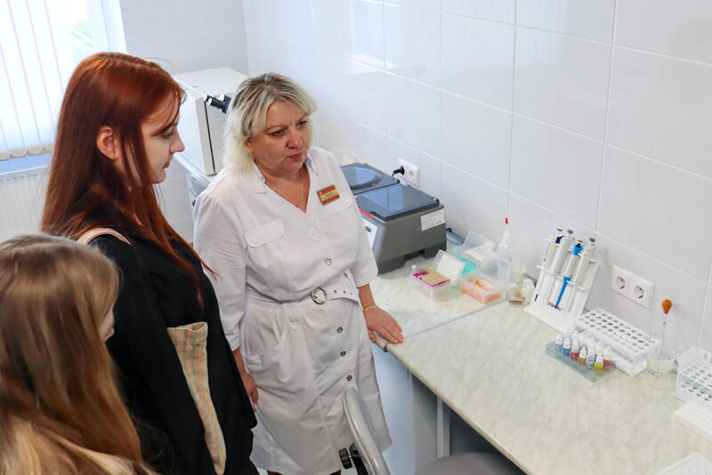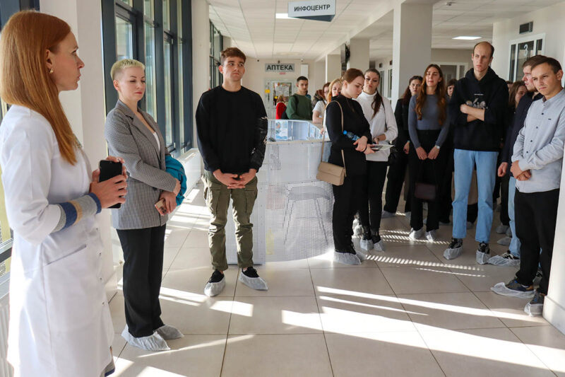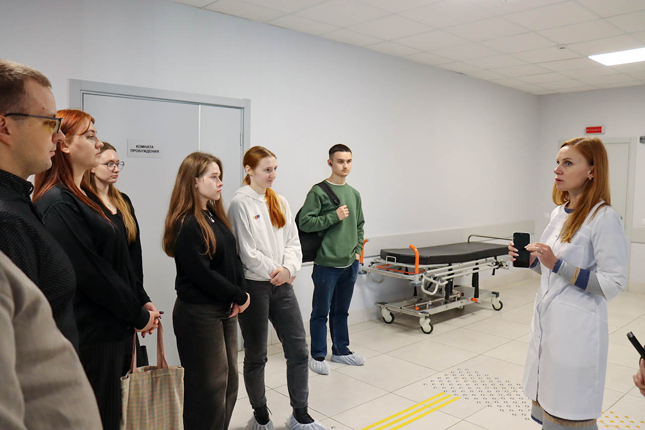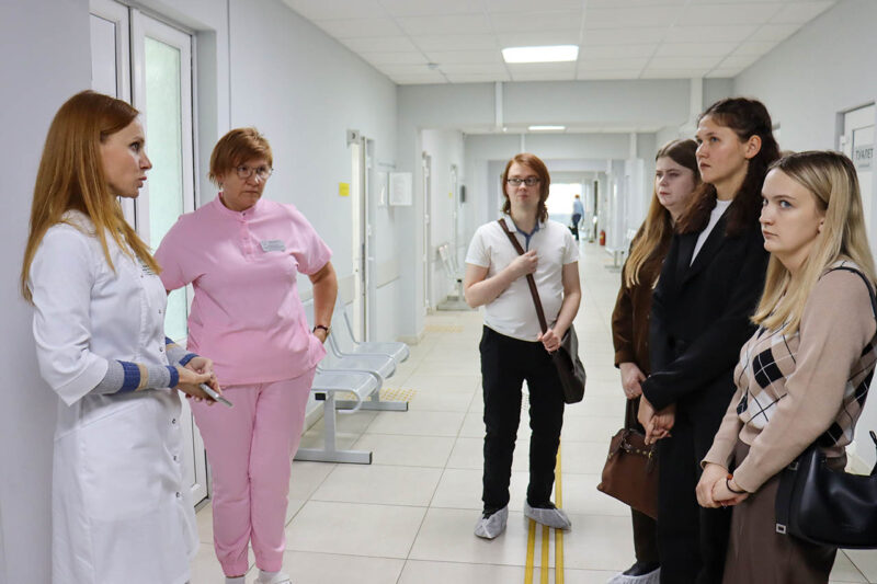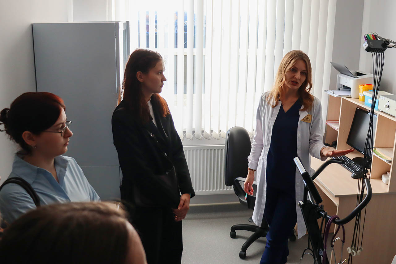 Главный врач Несвижской ЦРБ Виктория Праженик встретила молодых специалистов в фойе поликлиники. Там она рассказала об основных направлениях деятельности учреждения здравоохранения, а также о нововведениях. У молодежи была уникальная возможность посетить клинико-диагностическую лабораторию, отделение функциональной диагностики, кабинет раннего вмешательства и новое межрайонное урологическое отделение.