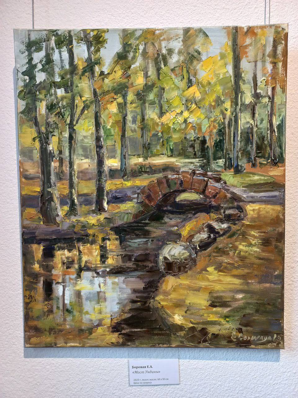 Так, старшыня Еўразійскай мастацкай супольнасці, мінчанка Алена Баравая скончыла ў свой час мастацкае вучылішча імя Глебава, працавала мастаком-мадэльерам, вяла плённую выкладчыцкую дзейнасць. Пасля перапынку вярнулася да жывапісу, піша алейнымі і акрылавымі фарбамі ў сваёй унікальнай манеры ў жанрах пейзажу і партрэту. Яе карціны напоўнены цеплынёй, любоўю і дабрынёй. На выставе ёю прадстаўлены віды куточкаў старадаўняга парка Радзівілаў, якія асвятляюць рэдкія пробліскі асенняга сонца.