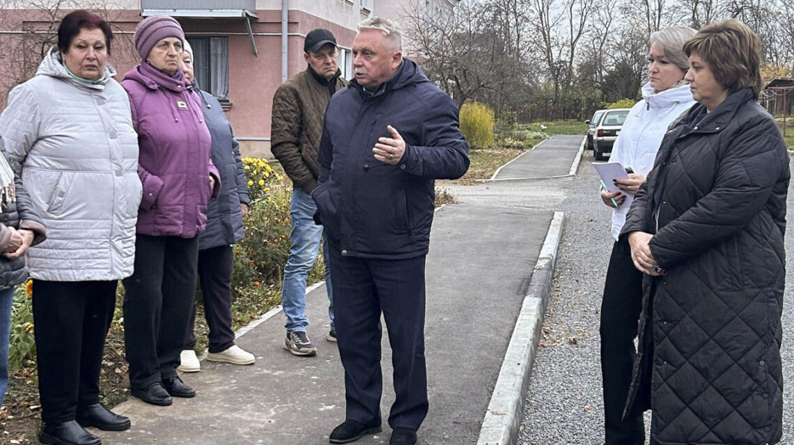 Основной вопрос, волнующий граждан, — качество дорожного покрытия во дворе домов №4, 6 и 8 по улице Советской в городском поселке Городея. В июне текущего года двор был заасфальтирован, позднее была проведена поверхностная обработка асфальтного покрытия. До этого дорожного покрытия во дворе не было. По словам местных жителей, там, где сделали разворотную площадку, размывает землю во время дождей и грязь потоком стекает на дорогу. Также жильцов этих домов не устраивает ширина дороги — более 6 метров, с их слов. Кроме этого, граждане сообщили, что между домов есть тропинки, которыми они активно пользуются, сокращая дорогу до магазина или к мусорным контейнерам. А из-за дорожных работ сходы с этих тропинок значительно поднялись, что создает определенные неудобства.