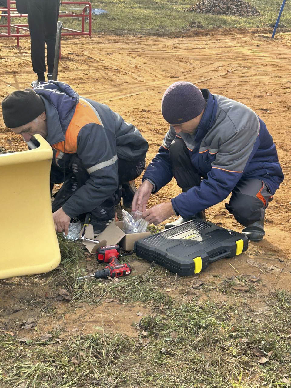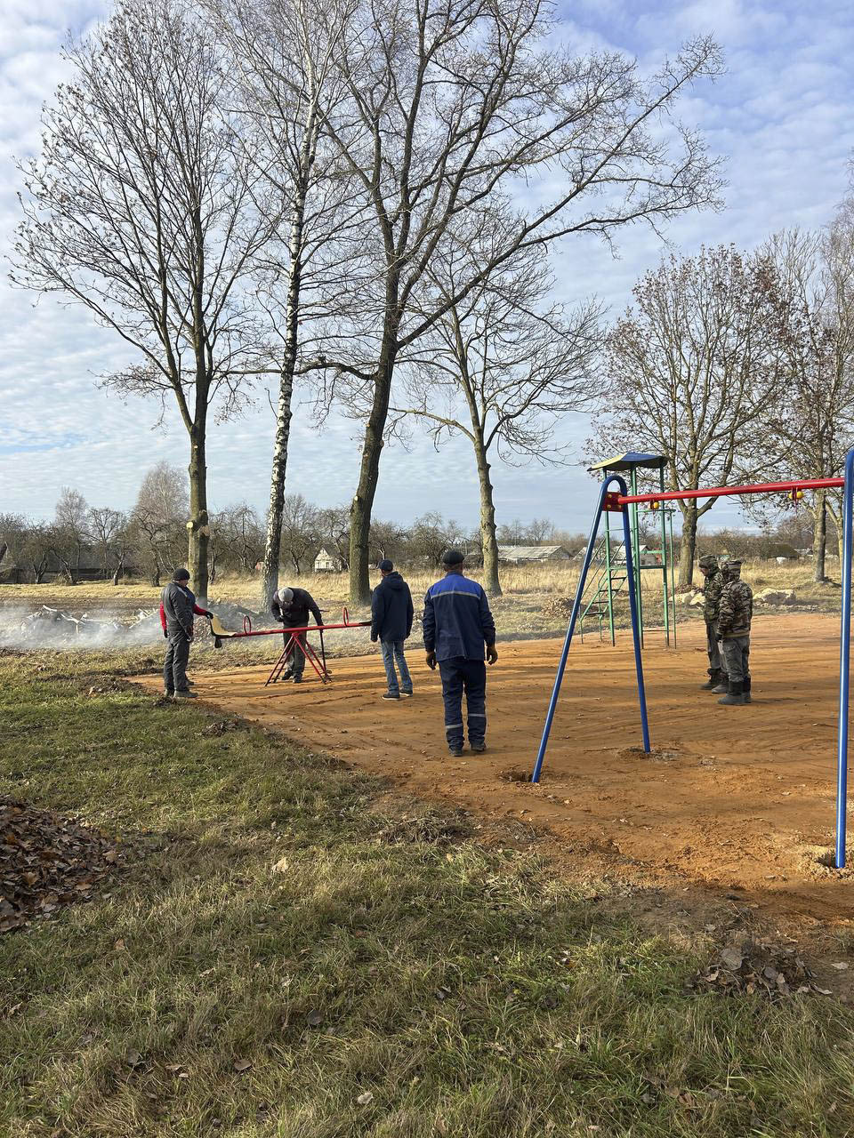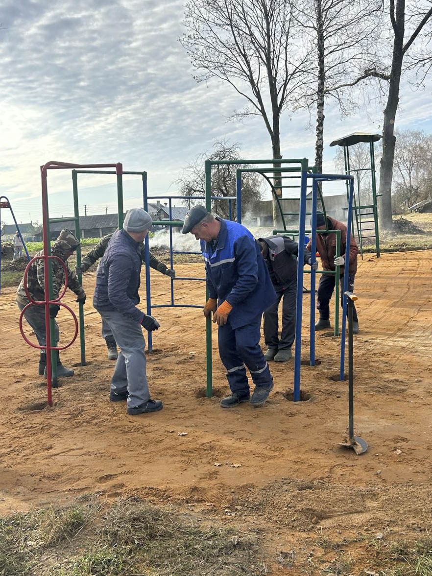 Жители деревни Леоновичи трудились семьями: собирали игровые элементы, устанавливали их, наводили порядок на прилегающей территории.