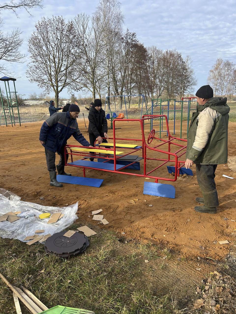 На главном фото: установка детской площадки в деревне Саска Липка.
