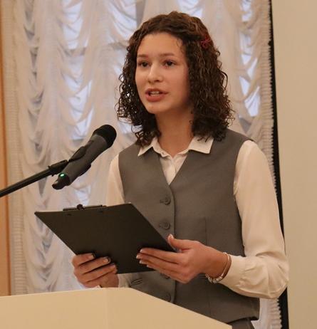 Выступае навучэнка Нясвіжскага дзяржаўнага каледжа імя Якуба Коласа Арына Жукоўская