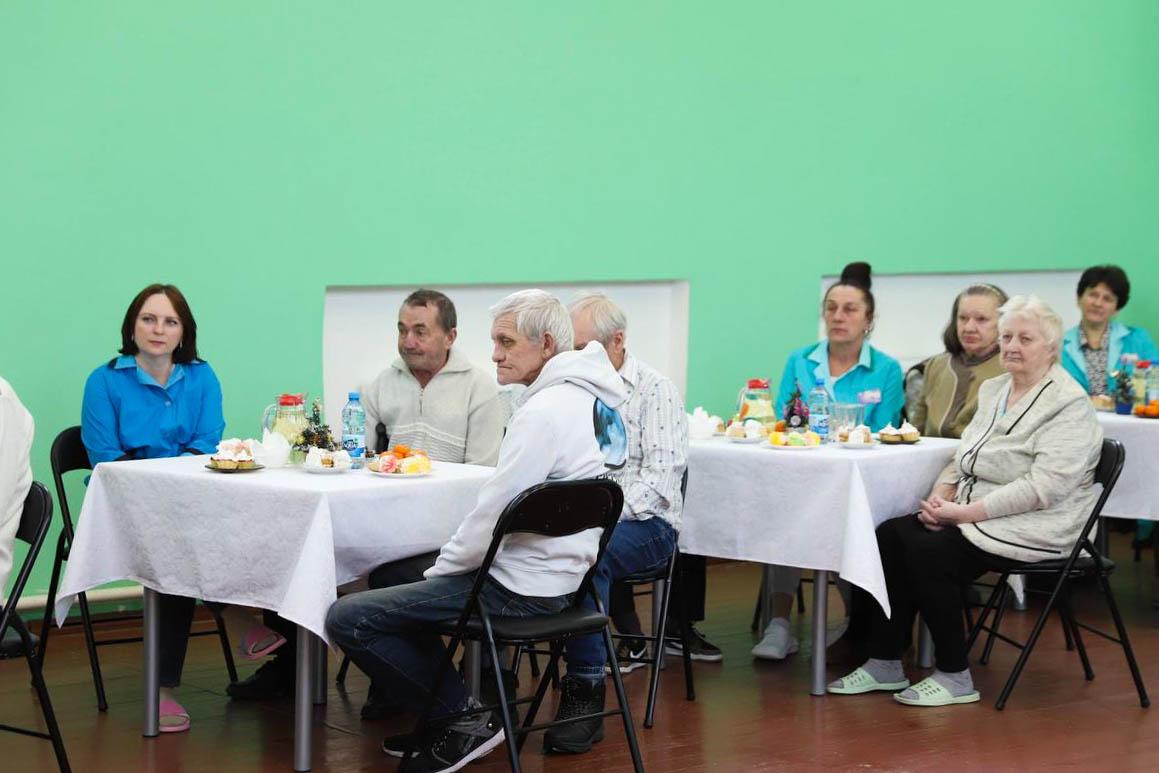 — В настоящее время акция «От всей души» проходит во всей Беларуси, и это действительно добрая и славная традиция, — обратился к постояльцам отделения Александр Дорохович. — В нашей стране большое внимание уделяется защите пожилых граждан: в социальном государстве никто не должен быть забыт и брошен на произвол судьбы. Каждый из вас прошел свой определенный жизненный путь, так сложилась судьба, что все вы оказались здесь, и наша задача — окружить вас теплом и заботой. Я познакомился с условиями, в которых вы проживаете, и отмечу, что руководством учреждения делается все возможное для того, чтобы ваша жизнь была комфортной. Я хочу поздравить вас с уже наступившим Новым годом и пожелать вам побольше счастливых и активных дней. И подарок от Министерства спорта — сертификат на 5000 рублей — вам наверняка в этом поможет!