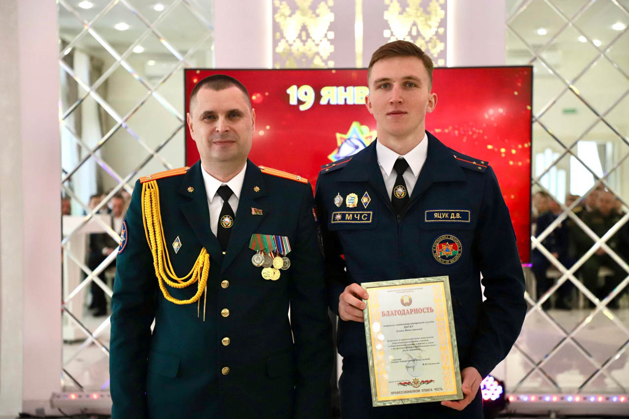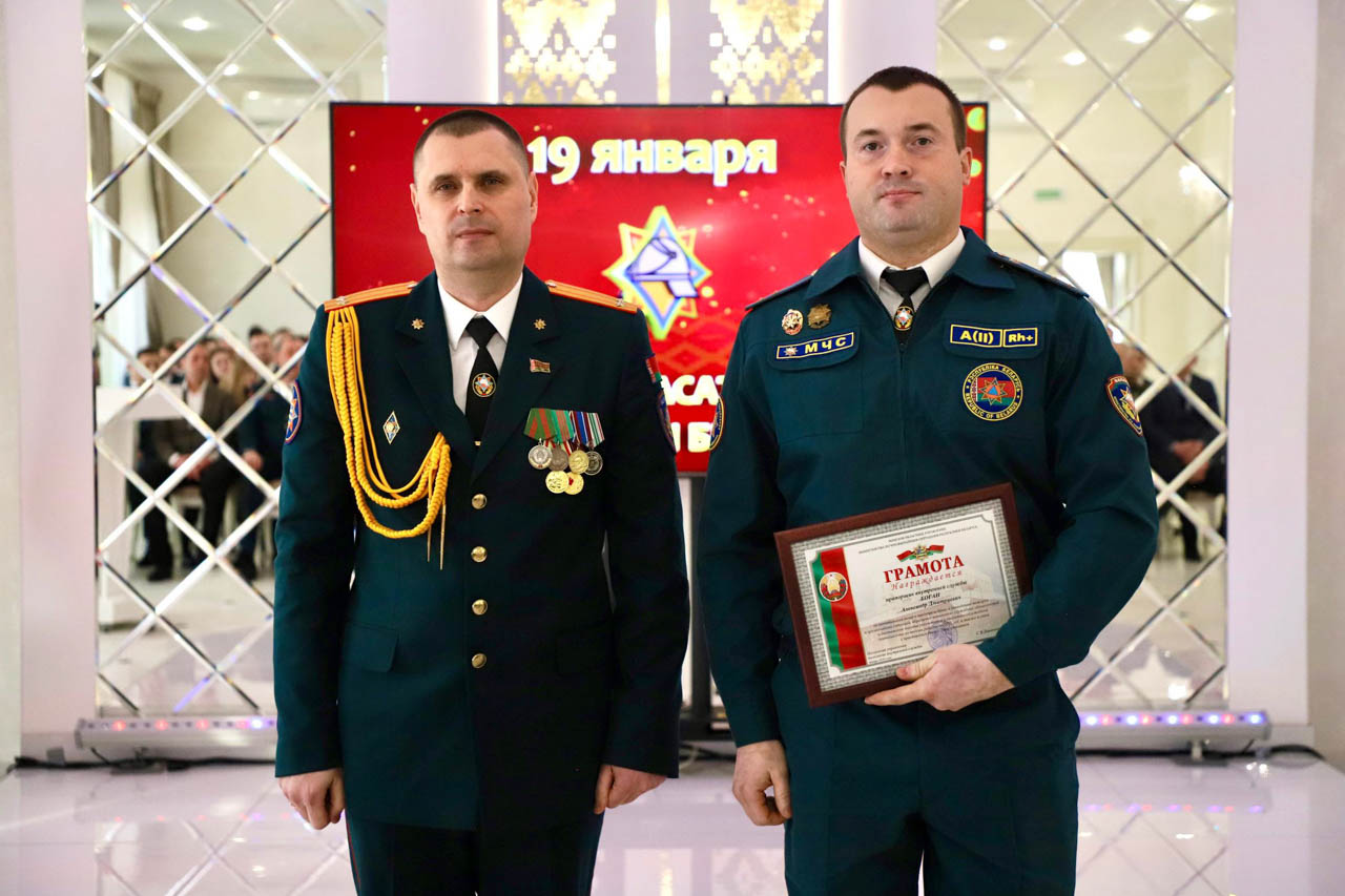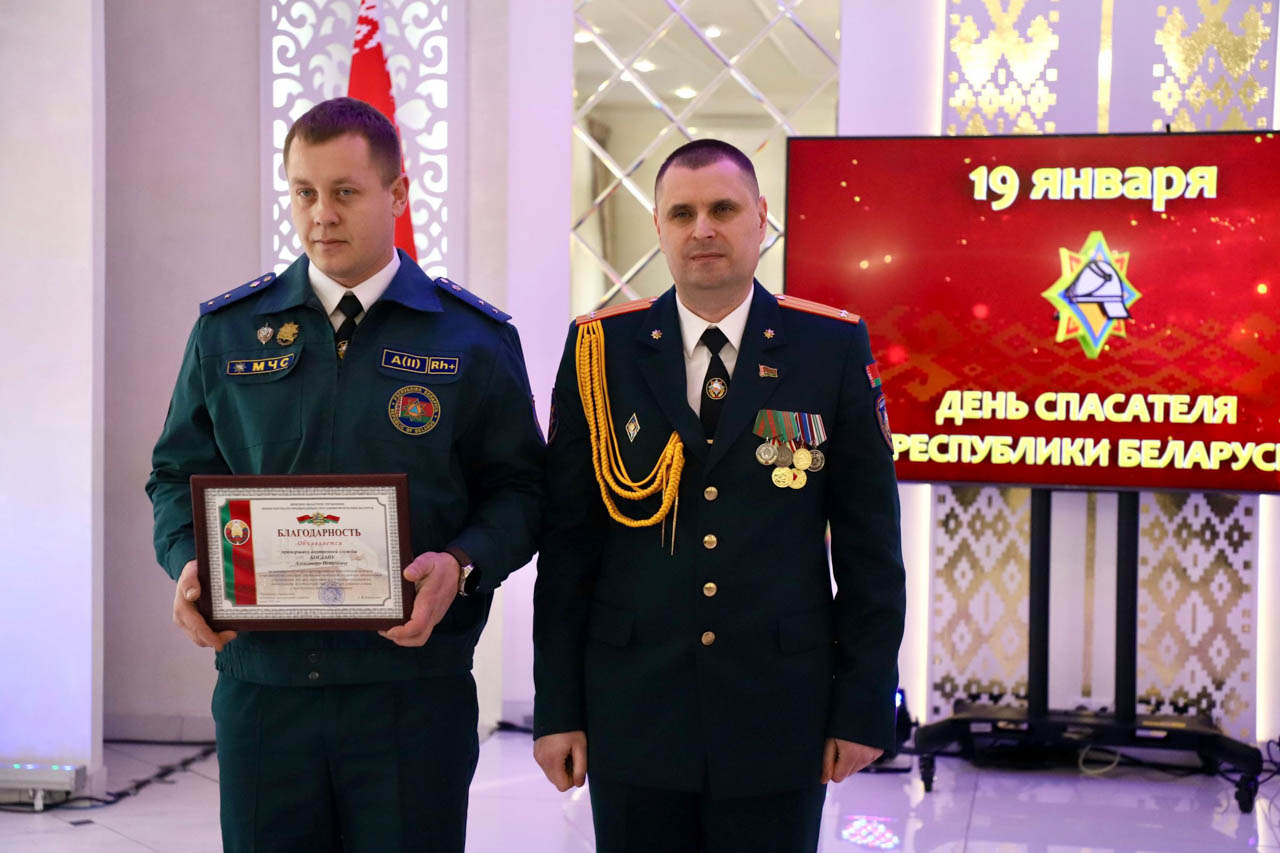 Благодарность начальника учреждения «Минское областное управление МЧС» была объявлена водителю пожарной аварийно-спасательной части №1 Александру Богдану и старшему инструктору-спасателю пожарного аварийно-спасательного поста №12 Павлу Плаксе.