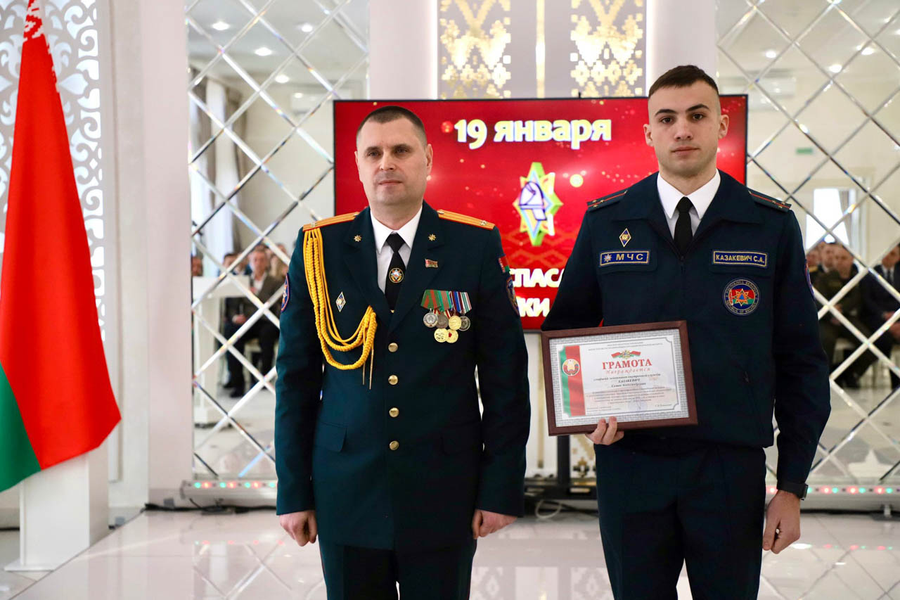 Грамотой учреждения «Минское областное управление МЧС» были отмечены начальник дежурной смены пожарной аварийно-спасательной части №1 Семён Казакевич, водитель пожарной аварийно-спасательной части №1 Александр Боган и старший инструктор-спасатель пожарной аварийно-спасательной части №1 Алексей Гурецкий.