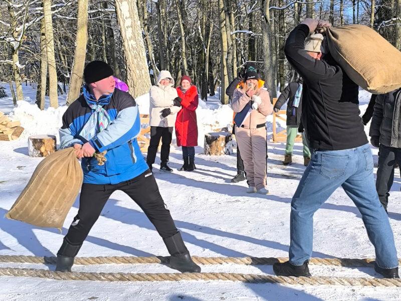 Они проходили в разных локациях. Участники команд смогли попробовать свои силы эстафете по колке дров, спортивной эстафете, «Метании валенка», «Битве мешками», «Перетягивании каната» и «Угадай мелодию».