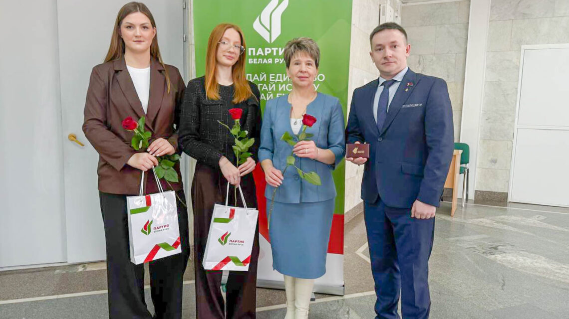 Несвижанки Вероника Ливенкова и Александра Комиссарова получили из рук председателя Белорусской партии «Белая Русь» Ольги Чемодановой партийные билеты, а председателям районных отделений Минской области вручили удостоверения.