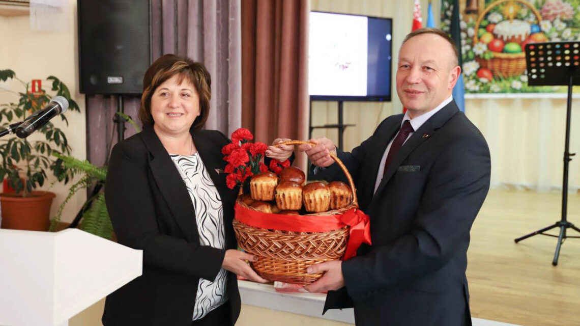 Председатель Несвижского районного Совета депутатов Светлана Антончик поздравила со светлым Христовым Воскресением постояльцев и персонал Несвижского социального пансионата «Берёзка».
